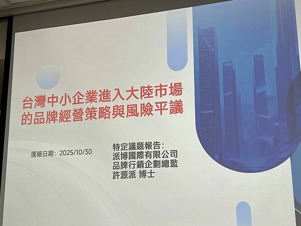 2025年10月30日中午,臺北企業經理協進會舉行台商張老師月例會,李永然律師以理事長身分出席並主持。會議首先由財稅會審類召集人林永法張老師進行業務報告,隨後邀請台商張老師許源浱總監發表專題演講,主題為「台灣中小企業進入大陸市場的品牌經營策略與風險評議」,以其多年實務經驗,深入分析台灣企業在進入大陸市場時所面臨的挑戰與機遇。會中,石賜亮名譽理事長亦針對議題提出問題與交流,現場氣氛熱烈。最後,李永然理事長致贈感謝狀予許源浱張老師,本次月例會圓滿結束。